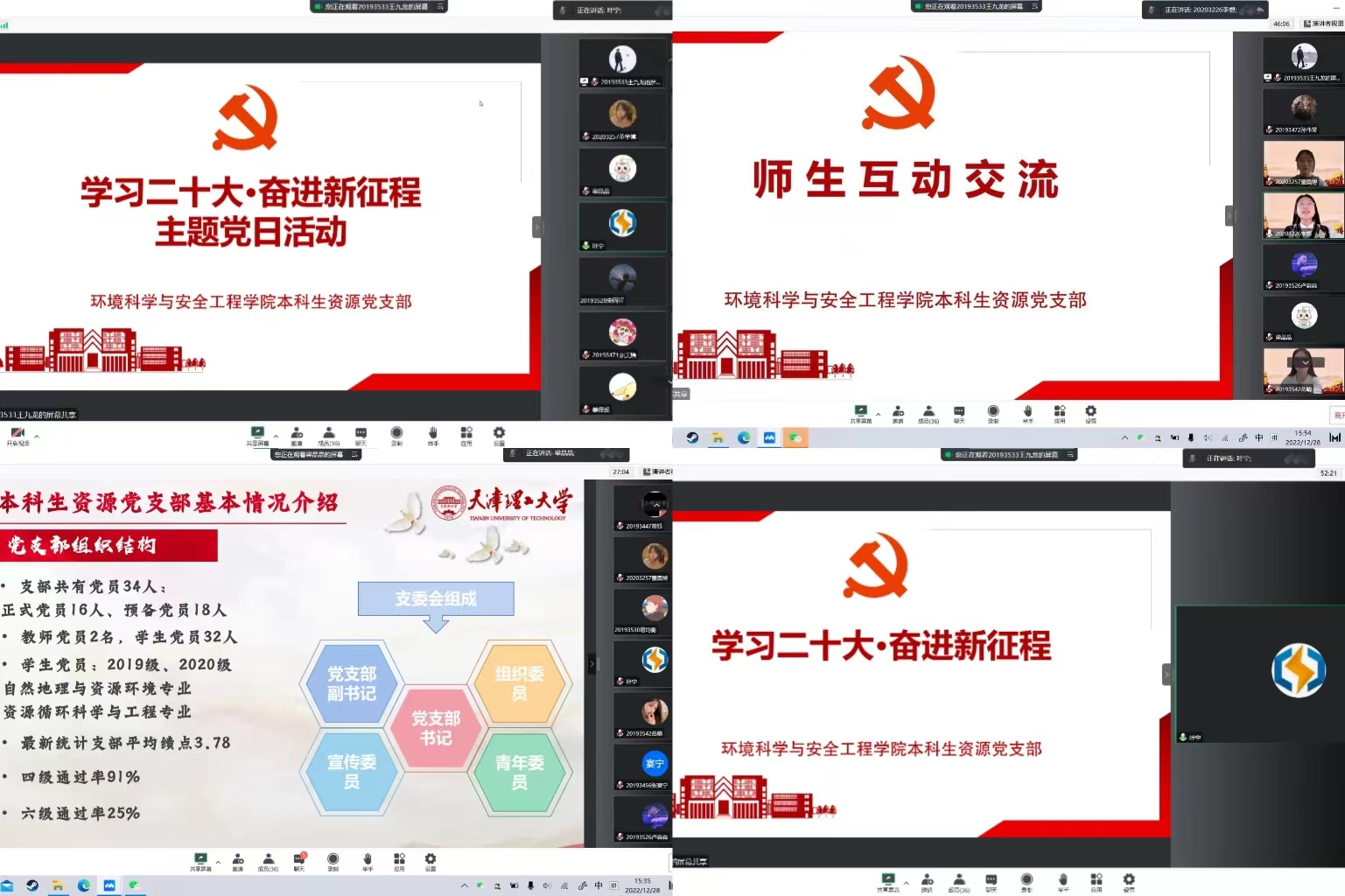为持续深入学习贯彻党的二十大精神,12月28日环境科学与安全工程学院本科生资源党支部开展“学习二十大·奋进新征程”主题党日活动。校党委常委,副校长叶宁出席,学院相关领导老师、党支部全体党员参加。