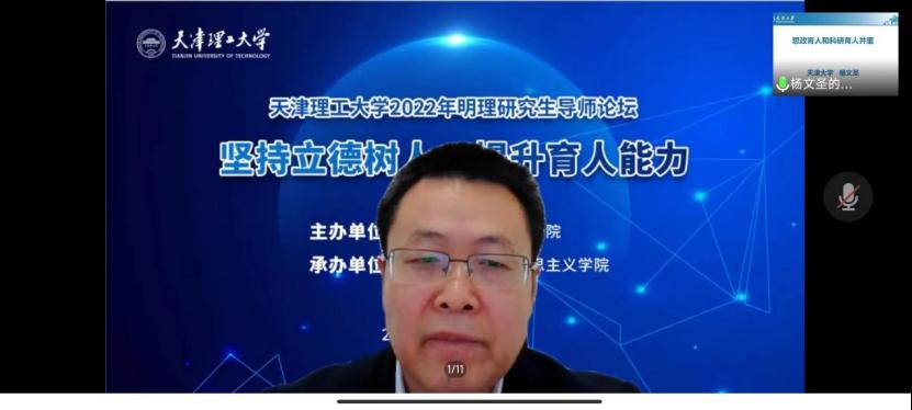 天津大学马克思主义学院副院长杨文圣教授作题为“思政育人和科研育人并重”的专题报告。他指出,对研究生要“严”字当头,要求学生多读书、多写作、勤思考、多交流;要循序渐进,分阶段、分过程教授学生;要因材施教,对基础不同的学生采取不同的教育方式。