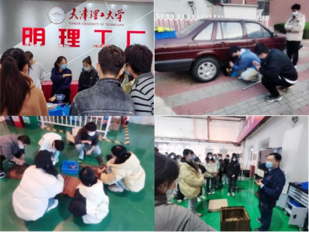 经过一下午的劳动实践,学生兴趣盎然并收获满满,不仅培养了劳动精神,同时也掌握了一些生活技能,锻炼了动手能力,强化了安全意识和团队协作意识。管理学院2020级财务管理专业本科生张锦龙说:“虽然工厂里的设备、工具对于我来说很陌生,但在老师们的讲解下我学会使用这些‘家伙’们,台钳夹铁片时不要夹太高、用錾(zàn)子时一定要与铁片垂直、使用电钻时双手必须稳、拆轮胎时要对角卸螺丝、千斤顶须顶在受力的支撑柱上……短短两个半钟头,别开生面的课堂让我们在劳动协作中收获友情,在动手实践中增长知识。”