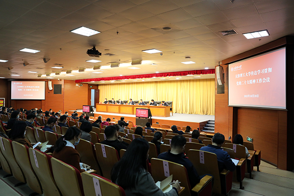 会议号召,全体师生员工要迅速将思想和行动统一到学习宣传贯彻落实党的二十大精神上来,以习近平新时代中国特色社会主义思想为指导,坚持社会主义办学方向,牢记“为党育人、为国育才”初心使命,努力实践科教兴国、人才强国、创新驱动发展“三大战略”,加快培养堪当民族复兴重任的时代新人,在建设科技强国、教育强国的新征程上展现天理之为,为全面建设社会主义现代化国家、全面推进中华民族伟大复兴贡献天理之力。