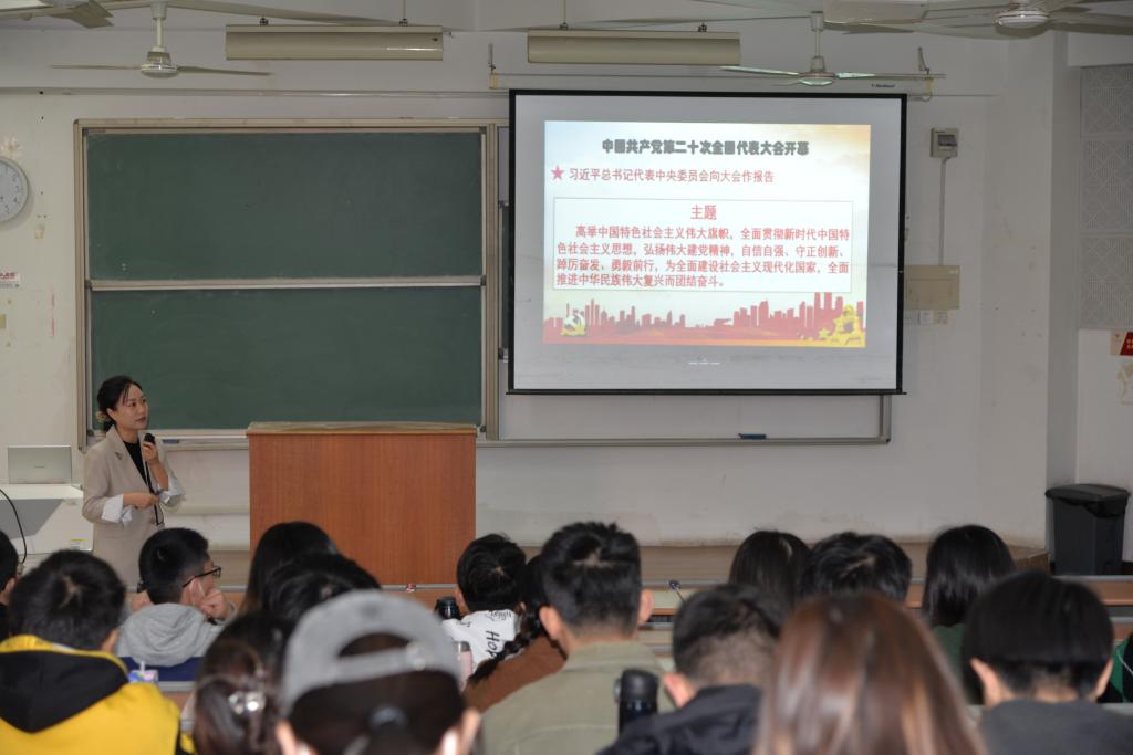 马克思主义学院思政课教师热切关注党的二十大胜利召开,及时收听收看开幕会,认真学习党的最新理论成果,第一时间通过思政课主渠道将党的二十大报告内容传递给学生,用习近平新时代中国特色社会主义思想铸魂育人。