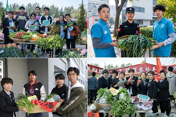 校领导与同学们走进明理农场沉浸在丰收的喜悦与自豪之中。大家将劳动成果分享给为学校默默付出的工勤与安保人员,感谢他们在疫情期间舍小家顾大家,坚守在校园服务保障的岗位上。