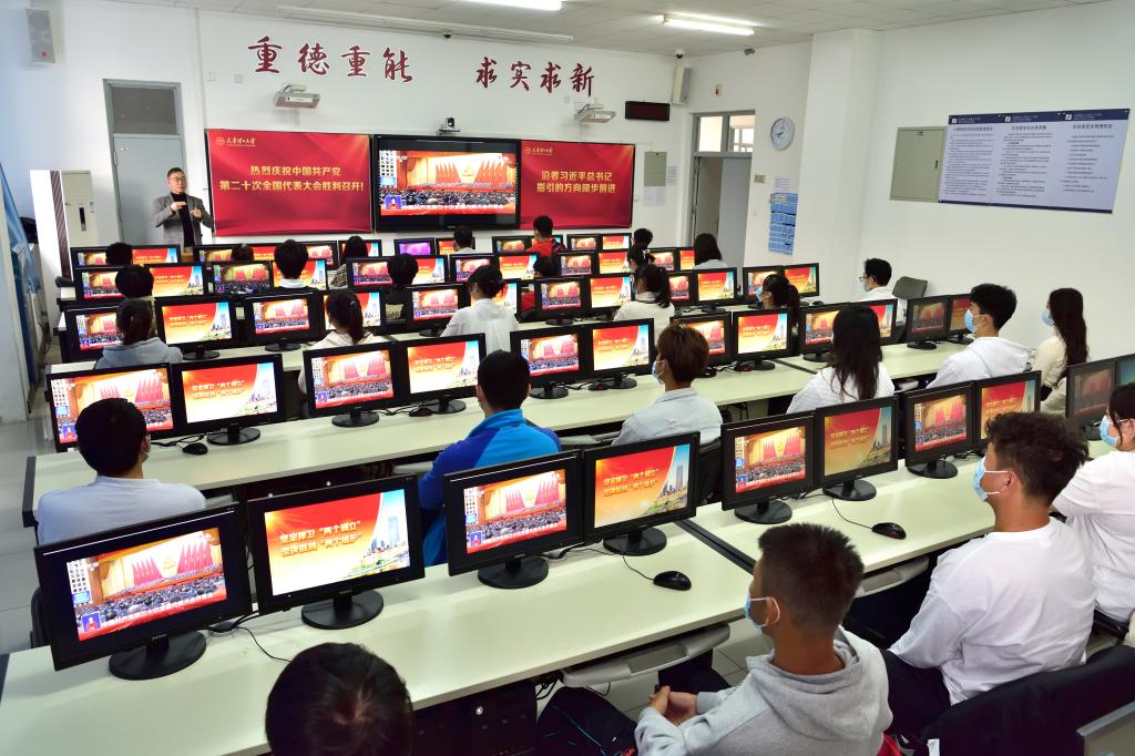 学校党委把认真组织收听收看党的二十大开幕会盛况作为重要政治任务,落实到每一个基层党支部,覆盖到每一名师生。各基层党委(党总支)组织党员干部师生以集中学习、党支部学习等方式,在报告厅、会议室、教室、实验室、“一站式”社区、辅导员工作室、青年之家、学生宿舍等近百个点位集中收听收看习近平总书记代表第十九届中央委员会向大会作的报告,第一时间学习领会党的二十大精神。