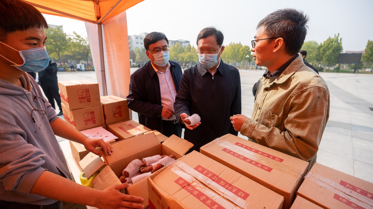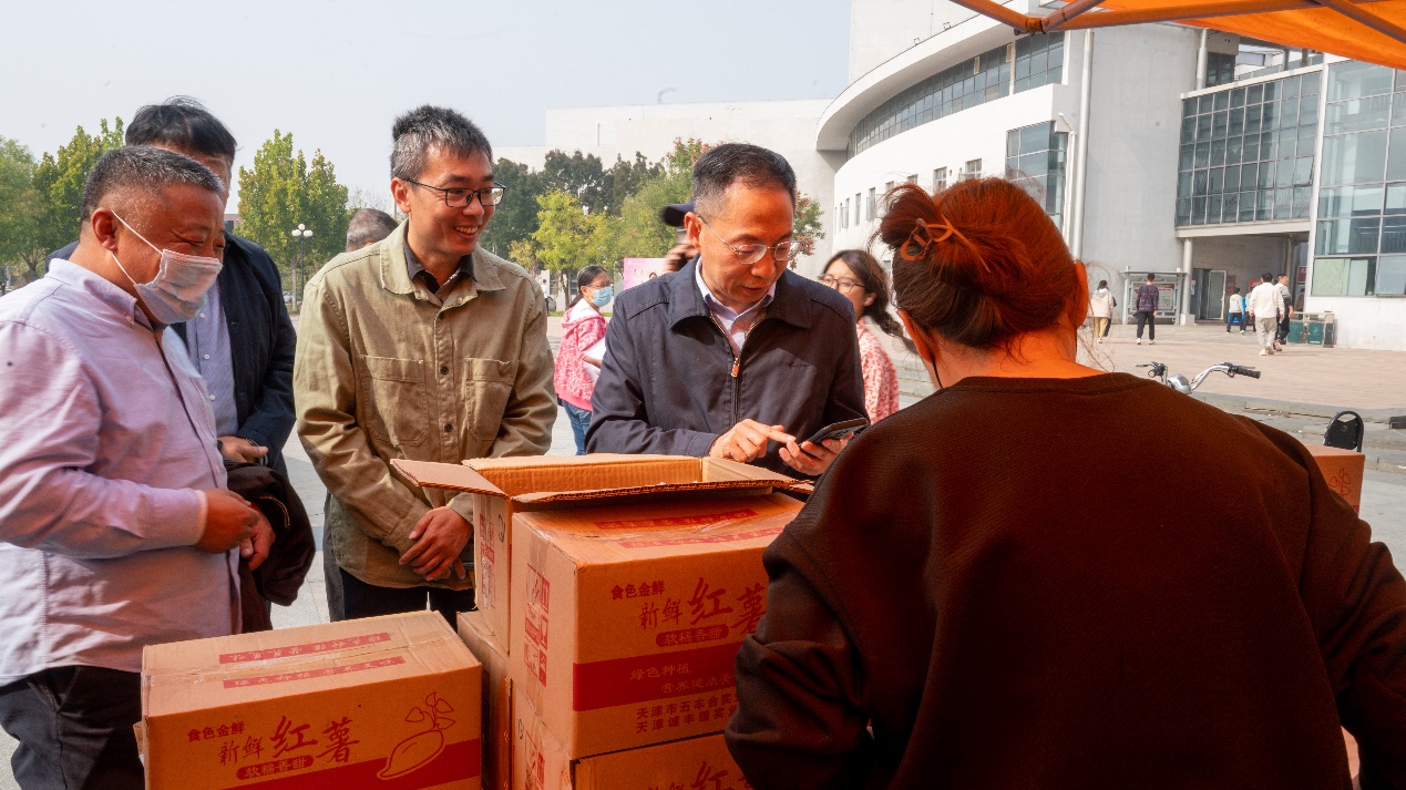 日前,为助力乡村振兴,校工会联合我校派驻蓟州区下窝头镇扶持经济薄弱村驻村工作队在朝阳广场举办蜜薯销售活动,校领导、党员干部、广大教职员工和热心学生踊跃参加。