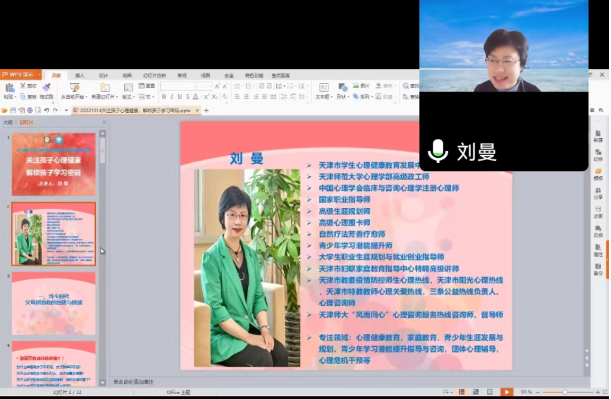 为帮助我校教师更新家庭教育观念,掌握家庭教育的知识和方法,构建和谐亲子关系,10月14日校工会以线上方式举办第十六期明理沙龙,邀请天津市学生心理健康教育发展中心、天津市妇联家庭教育指导中心特聘高级讲师刘曼作题为“关注孩子心理健康,解锁孩子学习密码”的主题报告,来自我校各基层分会的200余名教师参加活动。