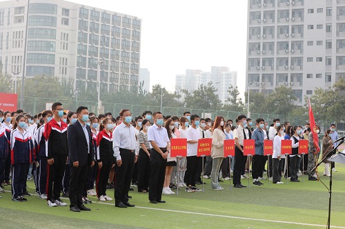为热烈庆祝中华人民共和国成立73周年,贯彻落实习近平总书记给南开大学8名新入伍大学生回信精神,迎接党的二十大胜利召开,10月1日上午8时,学校举行庆祝中华人民共和国成立73周年升旗仪式暨开展“爱国强军我担当、青春献礼二十大”主题教育活动启动仪式,校领导刘东志、张继东出席,校党委办公室、校长办公室、学工部、武装部、校团委相关负责同志、各学院师生代表及援疆支教团全体成员参加此次活动。