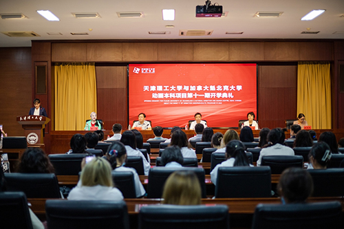 艺术学院党委书记在发言中肯定中加双方教师在艰难时刻为展开远程网络教学新模式作出的努力,希望2022级新生以奋斗为底色,做到苦学、博学、深学、善学,做勤于学习、善于思考、敢于拼搏、勇于奋进的新时代天理学子。