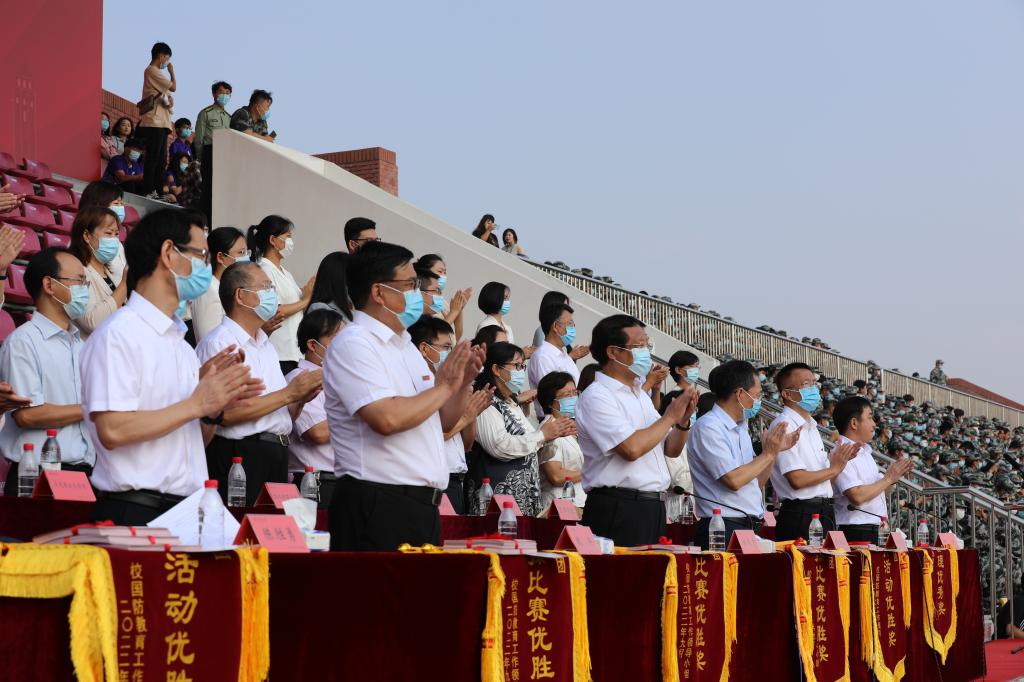 校党委书记刘东志发表了热情洋溢的讲话,他充分肯定了参训人员的训练成果,高度评价了本次军事技能训练的育人效果。他寄语同学们坚守报国丹心,树立鸿鹄之志,涵养浩然正气;希望全体新生以军训为起点,“向英雄学习、向前辈学习、向榜样学习”,心有大我,把爱国之情、报国之志融入祖国改革发展的伟大事业之中、融入人民创造历史的伟大奋斗之中;要“重整行装再出发”,以“咬定青山不放松”的坚韧和“直挂云帆济沧海”的豪情开启新学期,坚持“德能为本、实新为范”,不断丰富知识储备,强化实践能力,努力做到德智体美劳全面发展,做无愧于祖国、无愧于时代的天理青年,以实际行动和优异成绩迎接党的二十大胜利召开。
