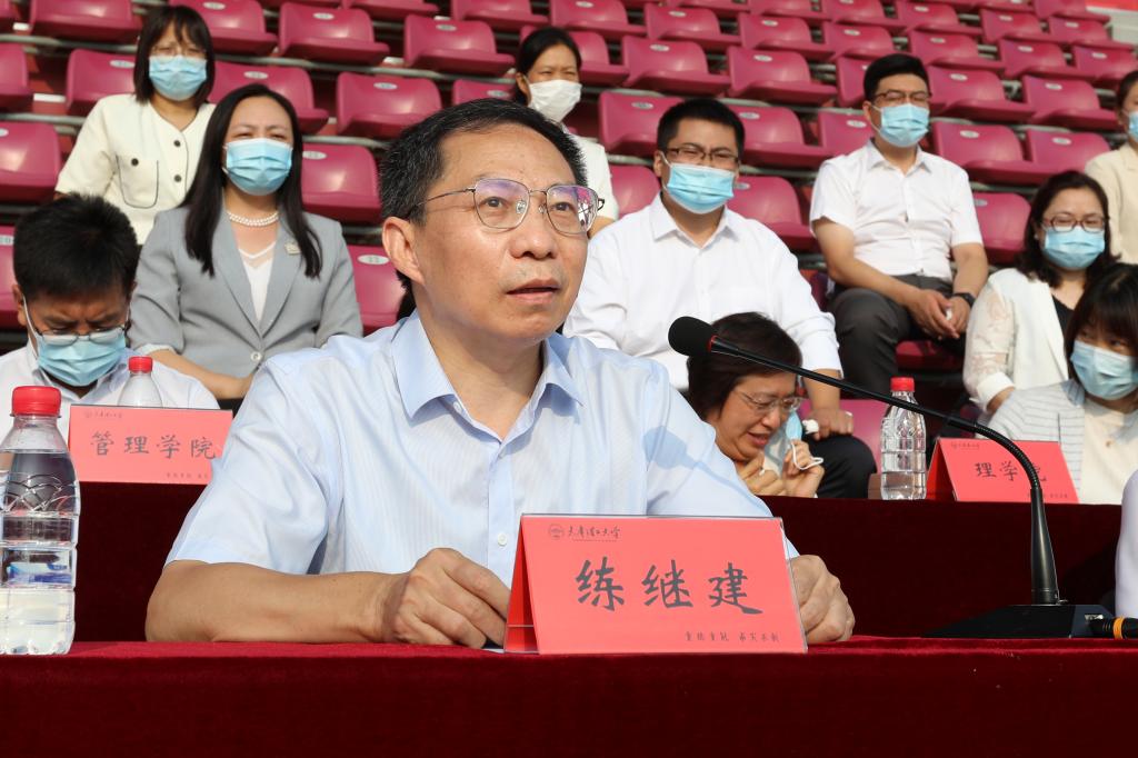 校党委副书记、校长练继建在开学典礼上向全体新生作形势政策教育开学第一课。他指出,2022年是新时代新征程中具有特殊重要意义的一年,我们党将召开二十大。他希望广大青年学子争当伟大理想的追梦人,争做伟大事业的生力军,秉承“重德重能、求实求新”的校训和“爱国奉献、求真务实、艰苦奋斗、开放包容、创新进取”的天理精神,坚定理想信念,厚植家国情怀,坚持德能并进,实现全面发展,敢于创新创造,勇立时代潮头,站好“起跑线”、奋进“全过程”,让青春在祖国和人民最需要的地方绽放绚丽之花。