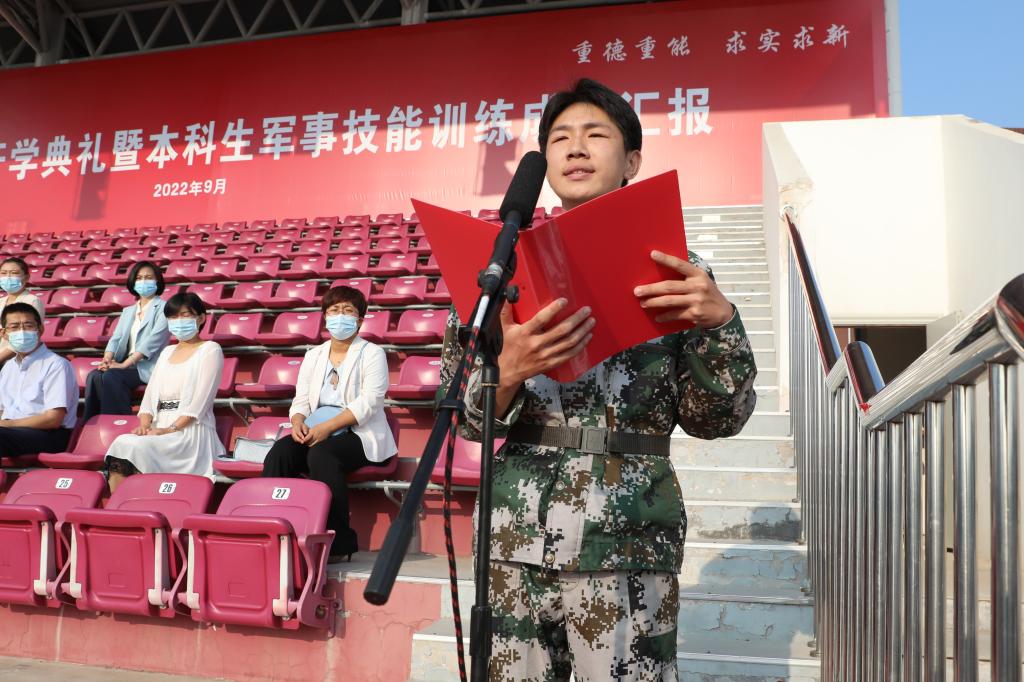 9月11日,开云官方在线入口2022级学生开学典礼暨本科生军事技能训练成果汇报大会在体育场举行。校领导刘东志、练继建、魏东、张继东、陈胜勇、叶宁出席,学校有关部门、各学院负责人及教师代表参加。大会由副校长叶宁主持。