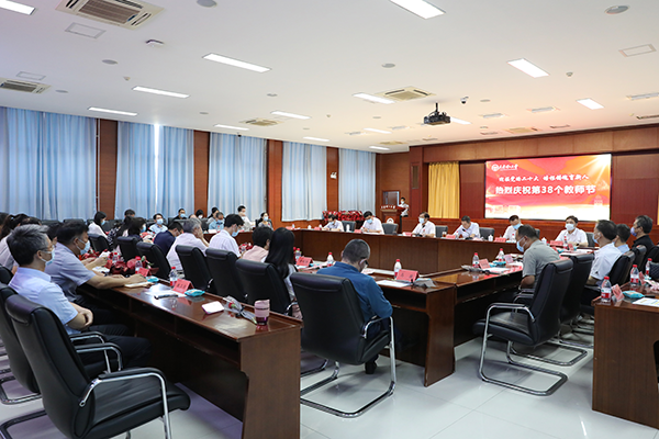 刘东志向全校教师提出三点期望和要求。一是高举旗帜、培根铸魂,提高政治站位。广大教师要用习近平新时代中国特色社会主义思想培根铸魂、启智润心,回答好“培养什么人、如何培养人、为谁培养人”的根本问题;要紧密结合教风学风建设活动,履行好立德树人的根本职责,当好学生健康成长的指导者和引路人,为党和国家培养德智体美劳全面发展的社会主义建设者和接班人。二是崇德修身、立行立言,涵养高尚师德。广大教师要做塑造学生品格、品行、品味的“大先生”,做学生为学、为事、为人的“大先生”;要把培养堪当民族复兴重任的时代新人始终铭记于心,甘当人梯、甘当学生成长发展铺路石;要持续在加强品德修养上下功夫,模范践行新时代高校教师职业行为准则,维护教师职业形象,提振师道尊严。三是凝心聚力、担当作为,擘画发展蓝图。广大教师要时刻铭记教书育人的神圣使命,确立新时代的教学观、人才观,不断提升教学水平、学术水平和人才培养质量;要把握好职业生涯的增值期,争做贤达之师,与学校事业发展同呼吸、共命运、齐进步;要发扬“三牛”精神,弘扬真抓实干的工作作风,在落实学校第二次党代会和“十四五”规划提出的目标任务中展现新作为、创造新业绩。