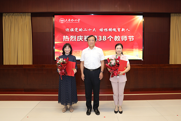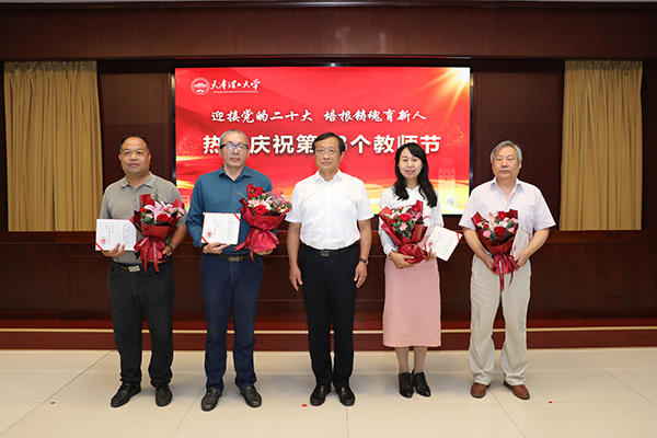 校党委书记刘东志为获奖教师、从教30年教职工代表颁发证书、送上鲜花,并号召全校教职工深扎工作岗位,一张蓝图绘到底,苦干实干、久久为功,为扎实推进高水平教学研究型理工大学建设作出更大贡献。