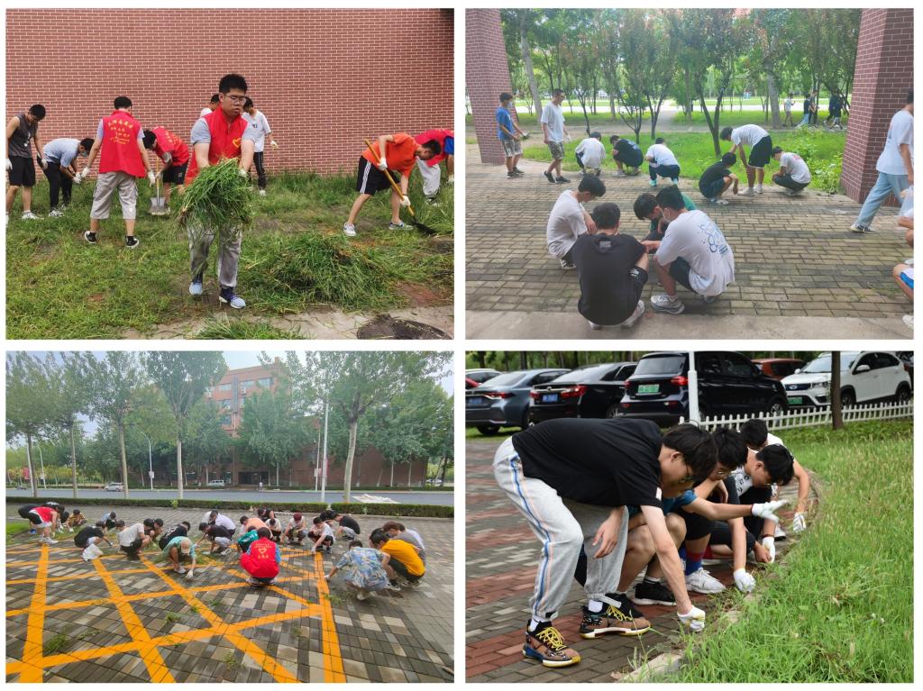300余名师生在各自公共卫生责任区进行义务除草活动,同学们在后勤工作人员的指导下,撸起袖子、蹲下身子清理杂草;有的铲杂草,有的负责清运,分工明确、团结协作,经过大家的辛勤劳动,区域杂草被清理干净,校园环境焕然一新。