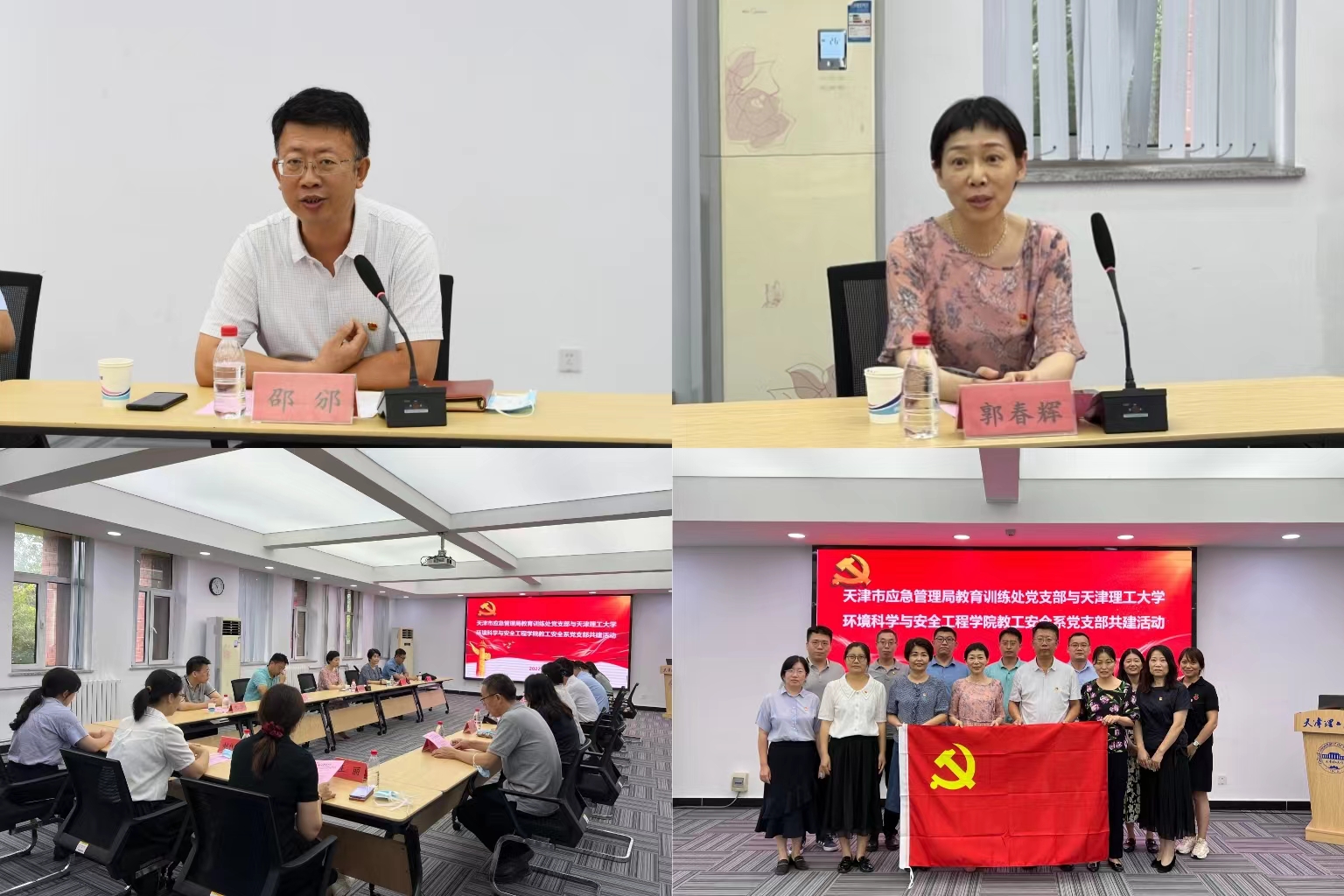 为落实“迎盛会、铸忠诚、强担当、创业绩”主题学习宣传教育实践活动要求,探索组织联建、党员互动、活动互联有效途径,日前环境科学与安全工程学院教工安全系党支部与天津市应急管理局教育训练处党支部开展主题为 “支部共建聚合力,携手喜迎二十大”支部共建活动。天津市应急管理局党委委员、政治部主任郭春辉,校党委常委、副校长张继东,环境科学与安全工程学院党政负责人及两个支部全体党员参加活动。