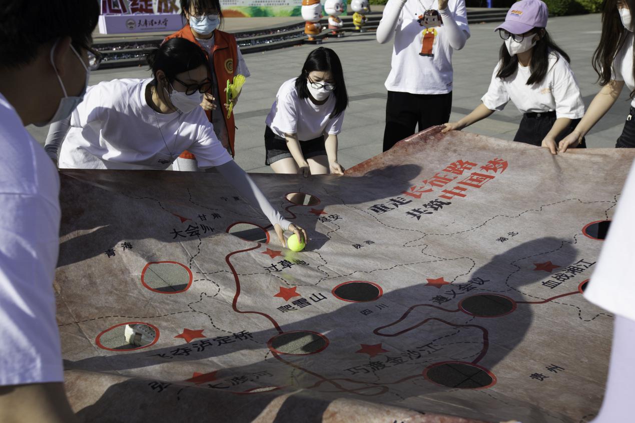 闭幕式后,心理健康教育中心组织心理运动会示范项目,14个学院的代表队参与“重走长征路 忆革命精神”、“齐心协力 一圈到底”等活动。思想政治教育与心理健康教育深度融合的活动,不仅能够培养团结互助的协作精神、提升学生积极心理品质,而且让青年学生切身体会到“接好历史的接力棒、走好新时代的长征路,是当代青年的机遇,更是沉甸甸的使命”。