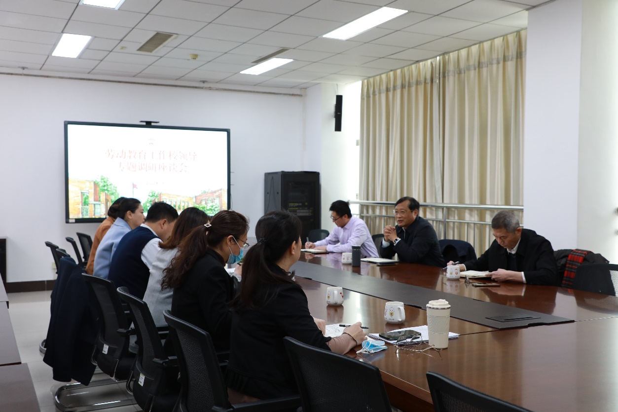 会上,党委学工部负责同志汇报了我校劳动教育工作目前开展情况、存在的困难、下一步工作举措等。随后,党委学工部、校团委相关负责同志围绕“如何结合工作实际与劳动教育工作进行深度融合”展开交流讨论。