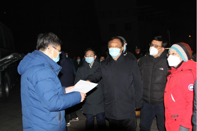 校党委书记刘东志代表学校党委对奔赴一线的党员、教师及家属表示衷心的感谢,并叮嘱大家一定要注意防寒保暖,做好自身防护,听从指挥,服从命令,与当地干部群众密切配合,共同筑牢基层疫情防控网,以良好的政治素质和扎实的工作作风,展现天理人的担当作为。