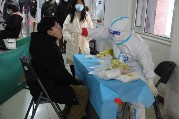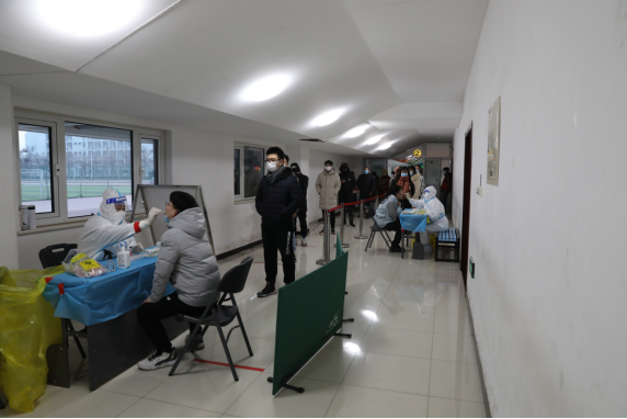为深入学习贯彻习近平总书记关于疫情防控工作的重要指示精神,认真落实中央领导同志和国务院联防联控机制提出的部署要求,深入落实市委常委会扩大会议暨市疫情防控领导小组和指挥部会议有关部署和市教育两委及属地有关要求,按照“全力打好社会面‘清零’攻坚战”的决策部署,学校于1月15日早晨6点开展第三轮全员核酸检测工作。