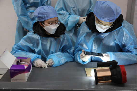 为做好第三轮核酸检测工作,学校严格落实上级有关部门决策部署,做到执行到位、落实落地。14日晚学校进行核酸检测采样管二维码粘贴,15日早晨5点学校组织后勤保障、网络保障、安全保卫、志愿服务等多个队伍进行现场培训、工作调试、分装防护物资等,确保工作落地落实。