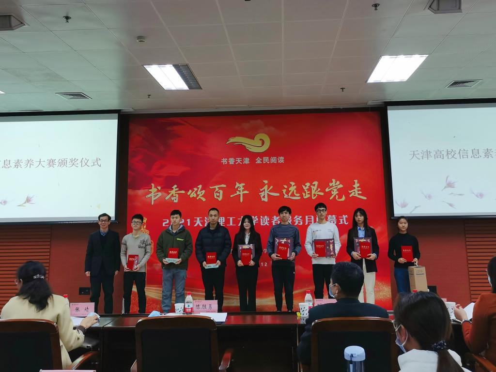 服务月期间,恰逢天津高校信息素养大赛,在图书馆的广泛动员和深入培训下,我校参赛总人数位居全市高校首位,获得最佳组织奖,陈胜勇为参赛获奖同学颁发证书和奖品。