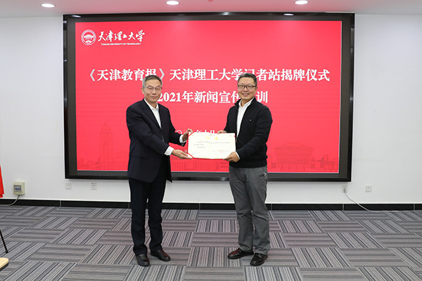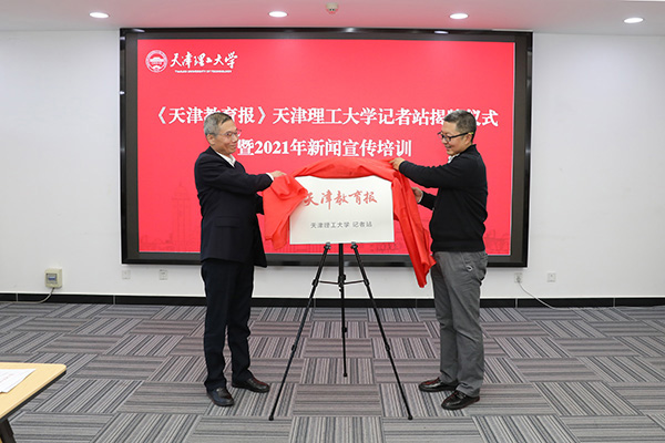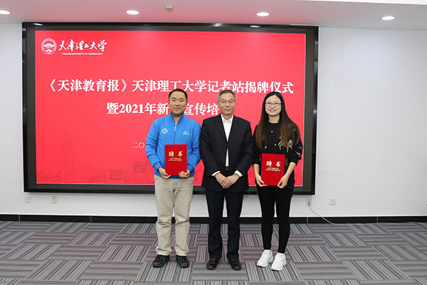 为深入贯彻落实习近平总书记关于宣传思想工作系列重要论述,切实承担起举旗帜、聚民心、育新人、兴文化、展形象的使命任务,持续做好新时代宣传思想工作,10月21日下午,我校举行《天津教育报》开云官方在线入口记者站揭牌仪式暨2021年新闻宣传培训。天津教育报刊社社长、中国教育报天津记者站站长刘延军,天津教育报刊社记者刘佳、刘东岳,校党委副书记杜长有出席揭牌仪式,校党委宣传部、校网络安全与信息化办公室主要负责同志及基层党组织分管宣传思想工作负责人、通讯员、新闻中心学生记者代表50余人参加。校党委书记刘东志亲切接见了刘延军一行。