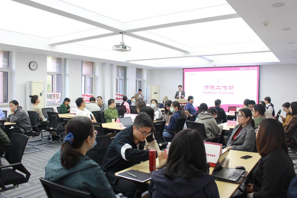 据悉,师德工作坊是我校常态化开展师德教育培训的创新模式,旨在通过学习交流研讨根植教师职业行为基本规范、涵养新时代高尚师德。一直以来,学校持续做好制度建设、教育培训、榜样引领和师德失范警示教育,引导教师发挥好主导作用,讲求方式方法,知行合一、言传身教,循序善诱、因材施教,积极探索鼓励式、引导式教育教学方法。