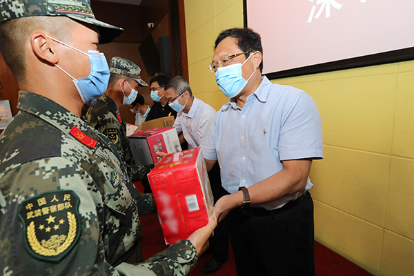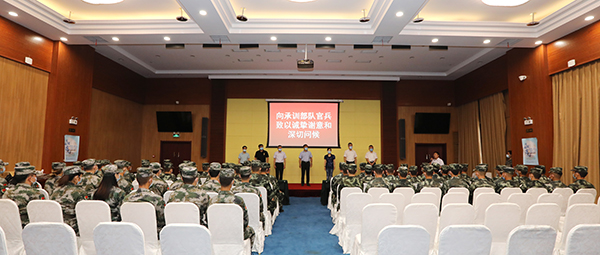 9月6日,校领导刘东志、郭滇华、杜长有、郑清春、魏东、张继东、陈胜勇来到承训部队官兵驻地,慰问承训部队指战员及全体在校退役大学生教练员。