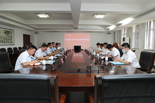7月28日下午,厦门航空天津分公司副总经理、工会主席巩加礼一行来校开展座谈交流。校党委书记刘东志、副校长张继东出席座谈会,办公室、学工部、教工部、国有资产与校园经济管理处等部门负责人参加。