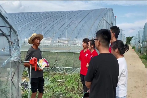 民情走访,坚定报国信念。桑梓镇头营村党支部书记赵金辉向实践队成员详细讲述了近年来头营村在路面硬化、垃圾清理、管道疏通等方面的变化,重点强调了党建引领是乡村建设的重要前提。实践队走近村民,了解乡村振兴战略的落实情况和新农村建设喜人成果。此外,实践队向村民从系统构成及使用前景两方面分享了“基于人工智能的精耕细灌温室控制系统”,并与村民进行深入沟通交流,为系统的优化升级和投产使用奠定基础。