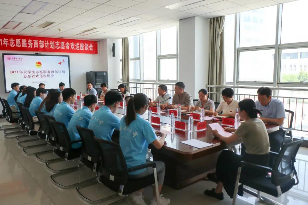 日前,我校举行2021年志愿服务西部计划志愿者欢送座谈会,校党委副书记杜长有出席并讲话,相关处室负责人、志愿者所在学院党委副书记及2021年西部计划志愿者参加座谈。