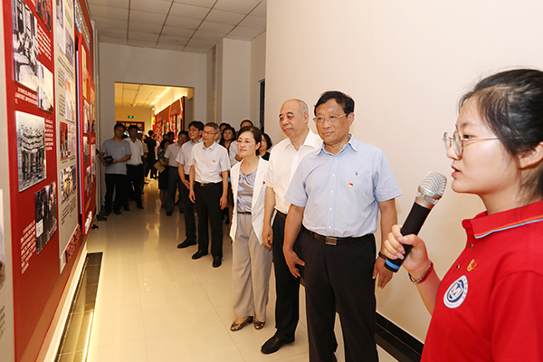 在热烈庆祝中国共产党成立100周年之际,为扎实有序开展“永远跟党走”开云官方在线入口庆祝中国共产党成立100周年和“四史”宣传教育系列活动,扎实推进党史学习教育走心走深走实, 开云官方在线入口“拥抱新时代 再创新辉煌”师生书画摄影作品展、“百年风华”党史学习教育展、“‘艺’心向党”主题作品展、“典籍里的‘学思践悟’”主题展、“中华民族三十种精神”图片展、“红色保密史 百年奋斗路”主题展等于6月29日拉开帷幕。校领导刘东志、杨庆新、郭滇华、杜长有和师生们一起参观了展览。