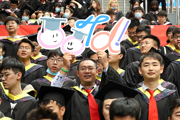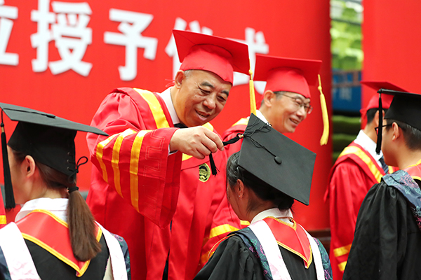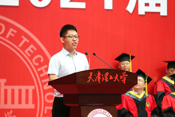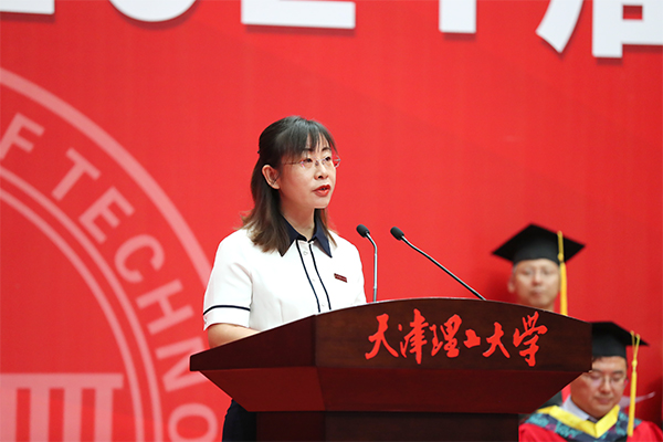 教师代表、“天理榜样”最美教师、理学院宋云燕向圆满完成学业的2021届全体毕业生表示祝贺,寄语广大毕业生重德重能做人,求实求新干事,彰显当代青年的智慧和力量,用天理品格助力人生更加耀眼夺目。