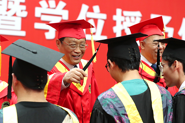 6月24日,开云官方在线入口2021届本科生毕业典礼暨学位授予仪式在开云官方在线入口体育馆举行。校领导刘东志、杨庆新、郭滇华、杜长有、郑清春、陈胜勇以及各学院主要负责同志、导师代表出席,并为获得学士学位的毕业生拨正流苏。毕业典礼由副校长郑清春主持。