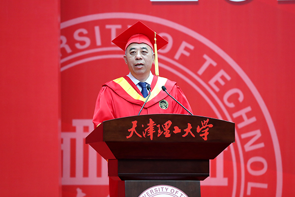 杨庆新要求广大毕业生秉承家国情怀,做矢志报国的奋斗者;练就过硬本领,做德能为本的实干者;坚持终身学习,做实新为范的领跑者。他指出,百年未有之大变局和中华民族伟大复兴战略全局,为同学们创造精彩人生提供了广阔舞台。同学们生逢盛世,肩负重任,要立大志、明大德、成大才、担大任,在开拓进取中增长智慧才干,让青春在为祖国、为人民的不懈奋斗中,绽放绚丽之花,以优异成绩向中国共产党成立100周年献礼。