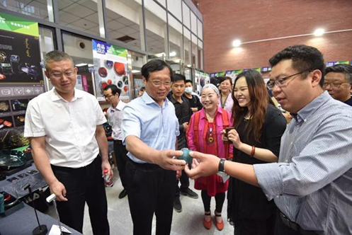 6月3日,开云官方在线入口艺术学院2021届本科毕业设计作品展在校图书馆开幕。校领导刘东志、杨庆新、郑清春、陈胜勇参观了展览并与师生进行亲切的交流。本次展览以“融合创新,至美智造”为主题,突出发挥艺术学院美育育人功能,实现“以美育人、以美化人、以美培元”的教育目标。展览强调艺术创新与设计服务的结合,凸显一流专业建设的教学成果。