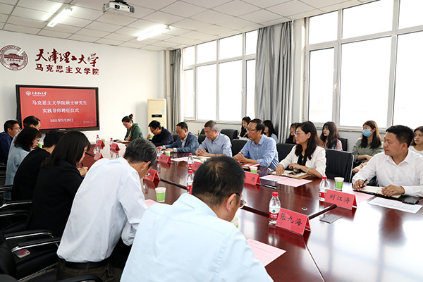 仪式上,学校组织部部长刘建啟、宣传部部长刘迎、统战部部长张兵、党办主任苏荣华、学工部部长刘江涛、校团委书记霍虹等六位老师受聘为马克思主义学院第一批校内实践导师,指导思想政治教育专业研一学生进行专业实践能力培养。