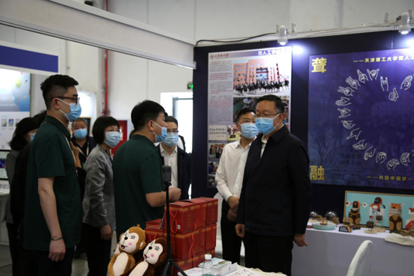 市委教育工委、市教委一级巡视员闫国梁、校党委副书记杜长有参观指导我校艺术实践工作坊