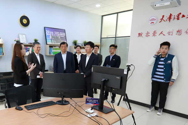 在聋人工学院学生众创空间,刘钊一行详细听取了相关指导教师的介绍,并同现场师生进行了交流。当了解到艺术专业默客工作室目前孵化了10支创业团队,其中柒屿工作坊获得人社部颁发的全国优秀创新创业项目,团队成员获得天津市首届创业园能手称号,创业团队去年的助残扶贫项目“无声茶香”获得天津市挑战杯银奖时,刘钊表示非常赞赏。