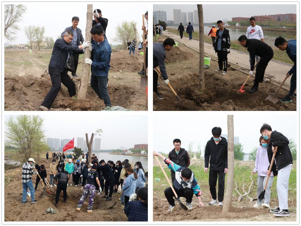 为践行习近平总书记在参加首都义务植树活动时的重要讲话精神,落实天津市教委关于开展义务植树40周年系列活动的通知要求,弘扬劳动精神,教育引导学生崇尚劳动、尊重劳动,4月11日上午,我校开展春季义务植树活动。校党委副书记杜长有、副校长张继东,以及党委学工部、后勤管理处、机械工程学院和化学化工学院师生200余人共同栽植树苗。