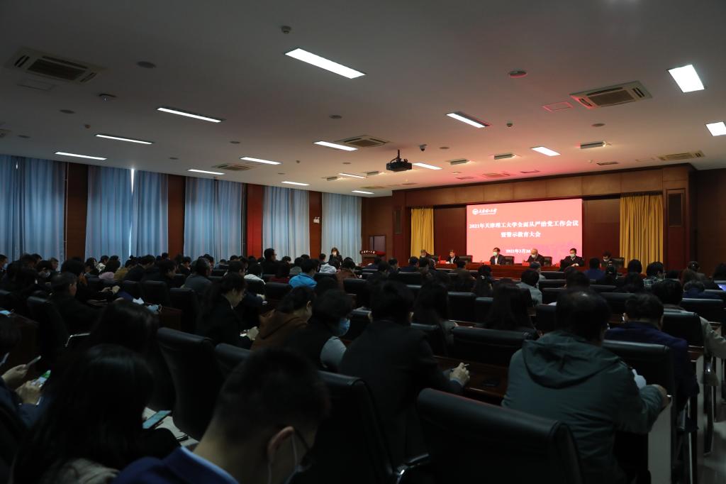 3月26日,我校召开2021年全面从严治党工作会议暨警示教育大会,深入学习贯彻习近平新时代中国特色社会主义思想,贯彻习近平总书记在十九届中央纪委五次全会上的重要讲话和五次全会精神,落实《党委(党组)落实全面从严治党主体责任规定》和2021年度天津市教育系统全面从严治党工作视频会议精神,总结学校2020年全面从严治党工作,部署2021年党建和全面从严治党重点工作任务,推动“讲担当促作为抓落实持续深入治理形式主义官僚主义不担当不作为问题专项行动”。学校领导班子成员、处级干部、基层单位纪委书记和纪检委员、市纪委监委驻校纪检监察组有关负责同志参加会议。