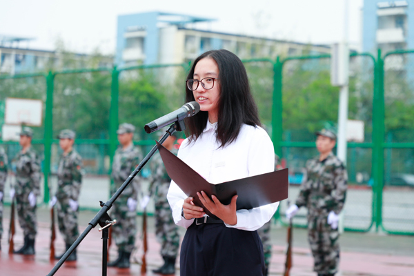 升旗仪式后,求实励志班学生代表、电气电子工程学院韩刘婧向同学们发出倡议:要认真学“四史”,不忘初心使命,坚定理想信念;要厚植爱国情怀,砥砺强国之志,练就过硬本领;要培养创新思维,增强实践能力,投身强国伟业。