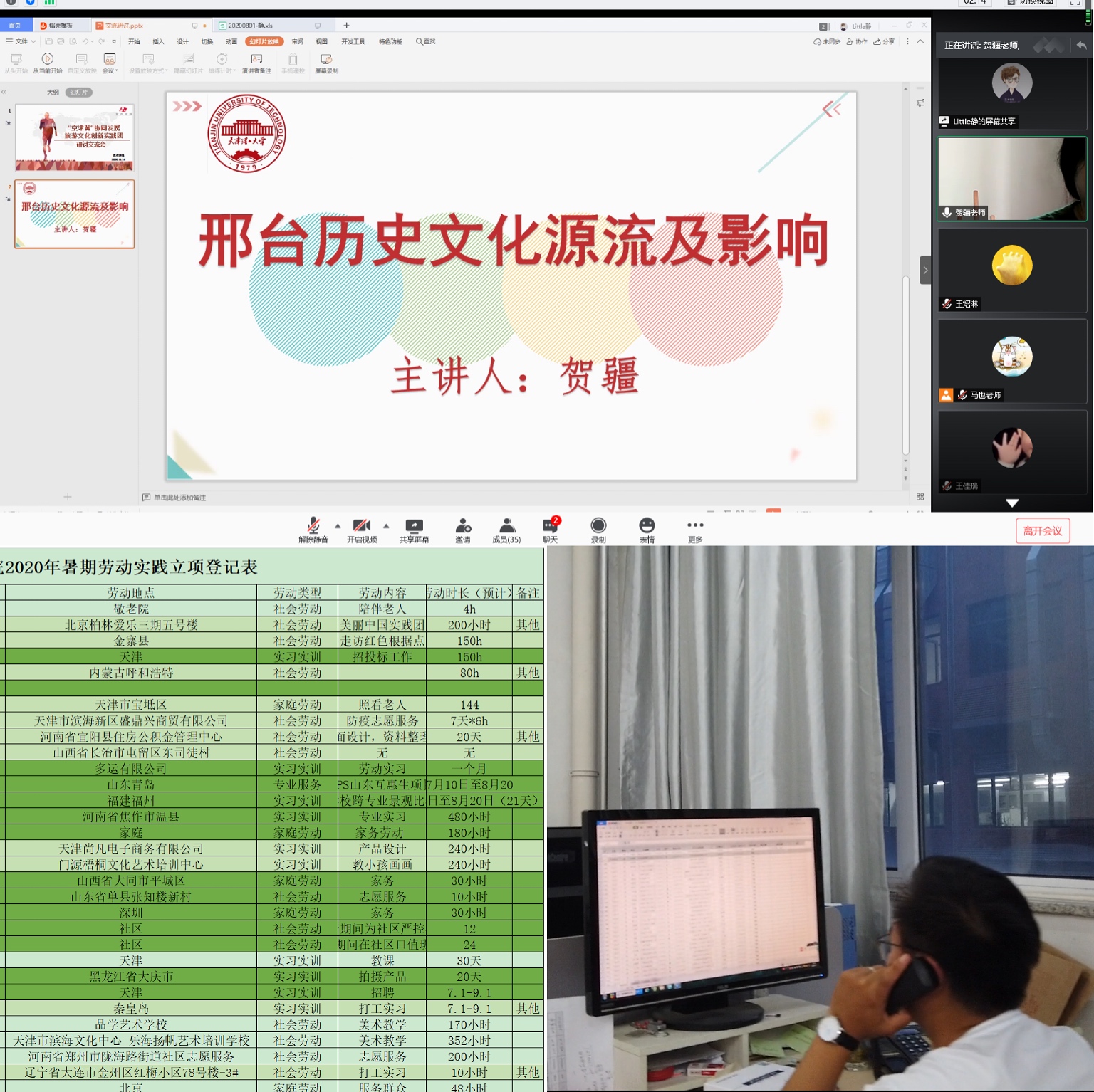学工办克服疫情影响,将实践育人落向更实处。学院成立“时不我待”主题劳动教育实践团,旨在通过劳动教育,以“主题研学”、“线下实践”、“云端展示”为主线组织系列暑期社会实践活动,引导学生形成马克思主义劳动观;组建京津冀协同发展旅游文化创新实践团,请专家讲解地方文化特色及产业发展前景,为深挖京津冀旅游文化创新点提供了思路和借鉴。