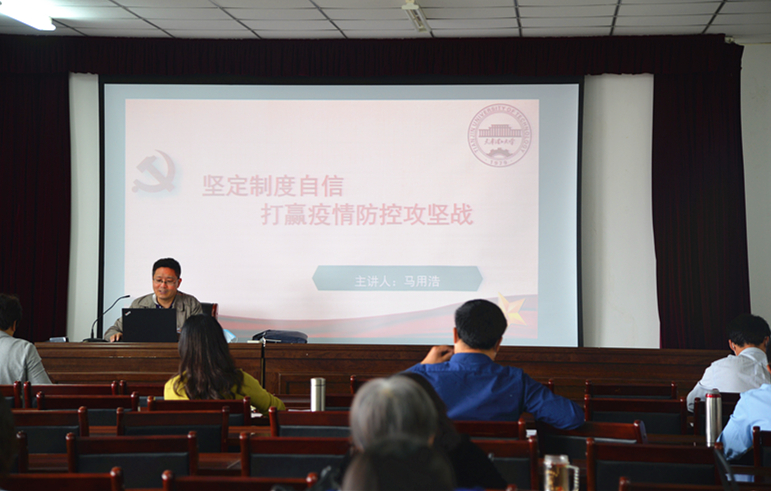 强化理论武装,统一师生思想。马克思主义学院党总支组织党员认真学习领会习近平总书记关于疫情防控的重要指示精神和中央、市委关于疫情防控的决策部署,同时还组织教师在线学习疫情防控培训课程。学院召开全体教职工大会,传达学习了《开云官方在线入口复课开学疫情防控工作方案》、并对疫情防控常态化条件下学院教学和科研工作顺利开展进行了部署,要求全体党员统一思想,提高政治站位,为全面复学做好准备。