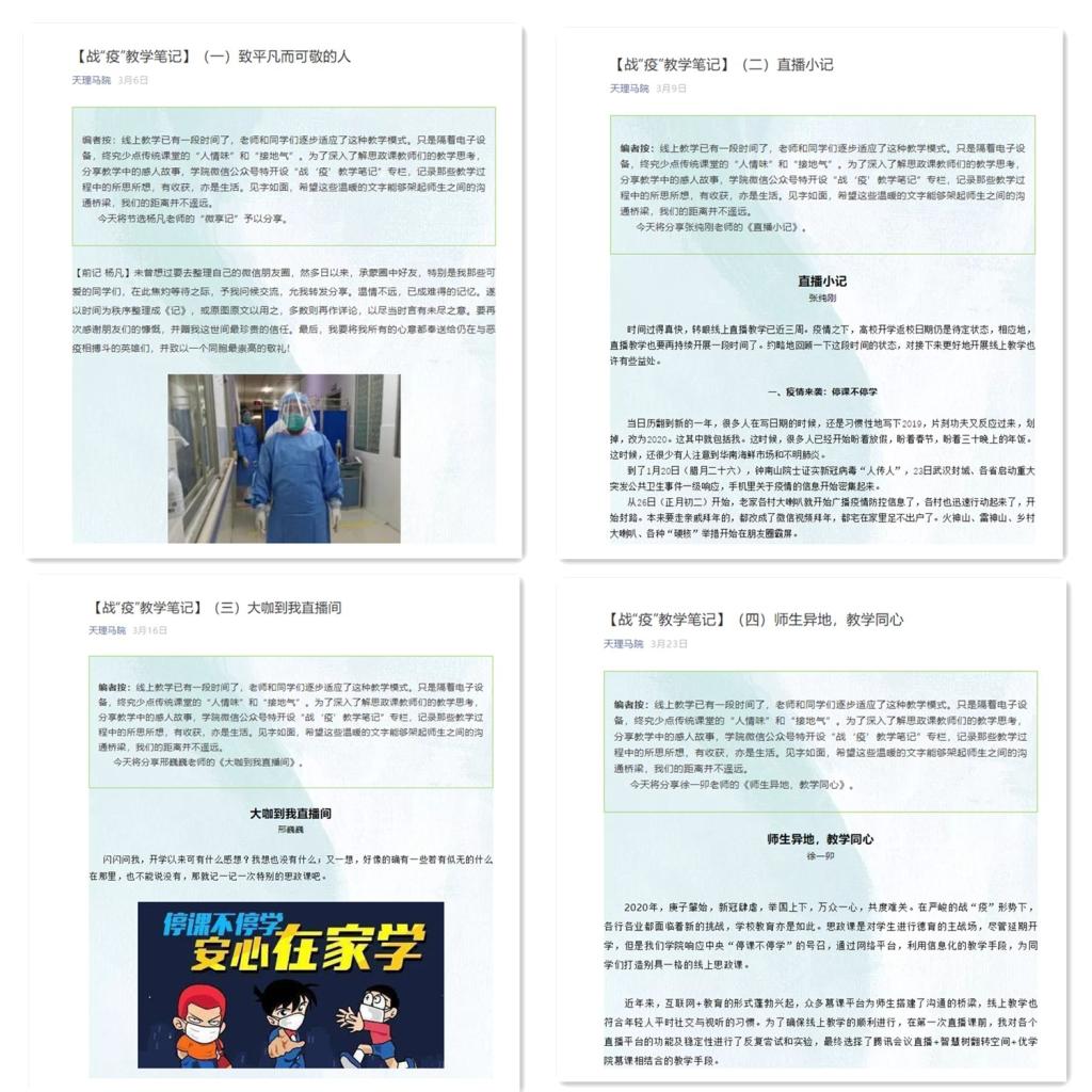 深化思政改革,讲好抗疫故事。马克思主义学院充分利用疫情防控中涌现出来的先进事迹、优秀典型、感人故事,将其融入思政课教学,为同学们讲好抗疫中国故事,同时运用现代信息技术创新开展疫情防控期间思想政治理论课教学与研究工作,推进新时代思政课改革创新。4月29日下午开展了在线教学集体备课会,共同探讨如何提升思政课教学的现实性和实效性,全体校领导参加了备课会。5月25日,学院利用在线会议举办了“新冠疫情下的中国与世界”学术沙龙暨形势与政策集体备课会,学院8位老师与校领导共同录制开学形势政策第一课,一同主讲抗疫中国故事。