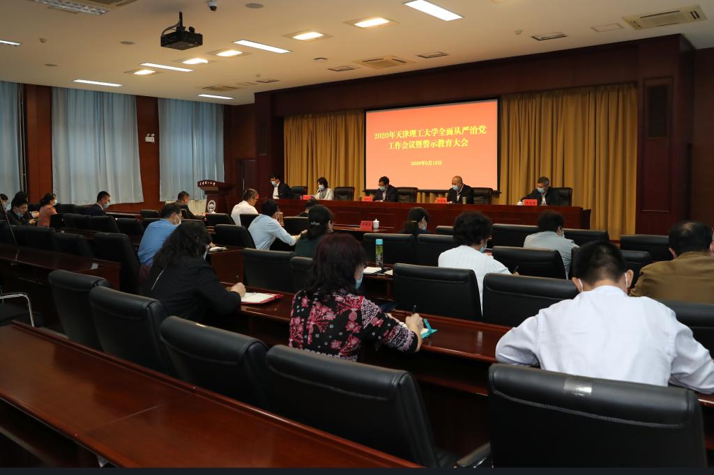 5月13日,我校以现场及网络视频会议形式召开2020年全面从严治党工作会议暨警示教育大会,深入学习贯彻习近平新时代中国特色社会主义思想,全面贯彻落实十九届中央纪委四次全会精神、市委十一届七次、八次全会和市纪委十一届七次全会决策部署,落实《党委(党组)落实全面从严治党主体责任规定》和天津市教育系统全面从严治党工作视频会议精神,总结学校2019年全面从严治党工作,部署2020年重点工作任务。学校领导班子成员、市纪委监委驻校纪检监察组成员、中层干部、基层单位纪检委员参加会议。