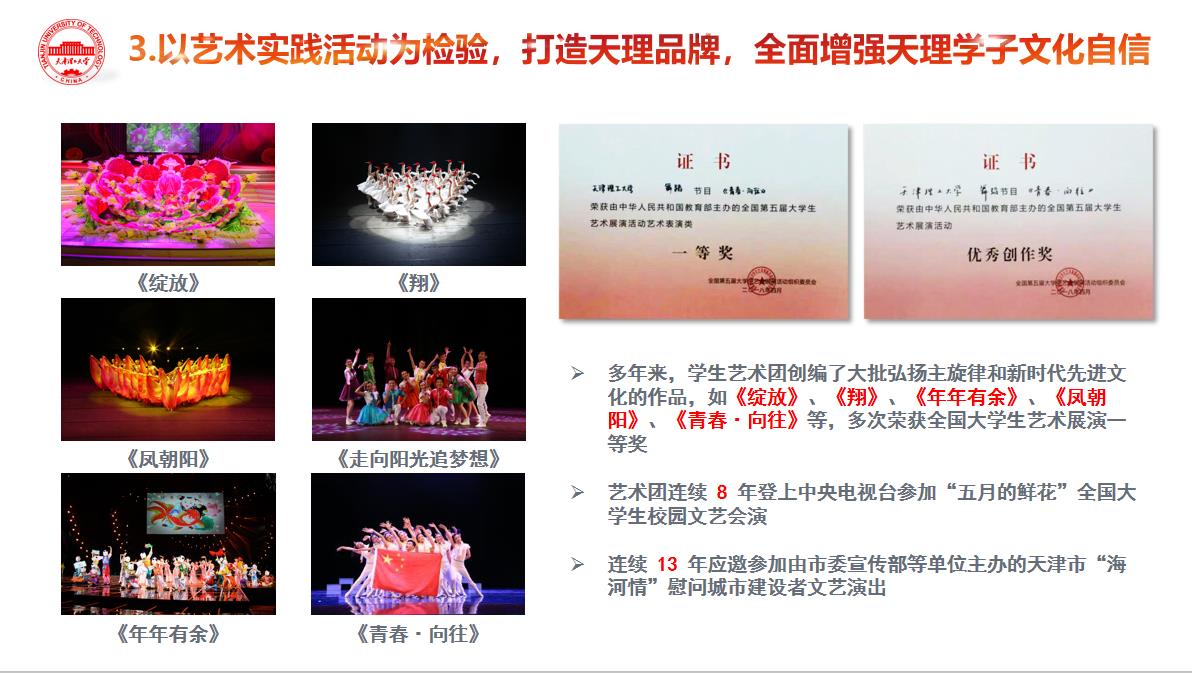 近日,2019年天津市高校新时代“一校一品”思政工作品牌建设项目揭晓,经专家评审,我校思政工作项目“发挥学生艺术团在学校美育中的独特作用”成功入选。