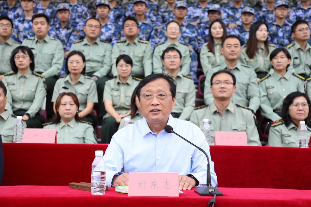 刘东志发表了热情洋溢的讲话,他充分肯定了参训人员的训练成果,高度评价了本次军事技能训练的育人效果。他寄语同学们要立鸿鹄之志,厚植家国情怀,将青春“小我”融入理想“大我”,将天理精神融入血脉、化作行动,主动扛起强国建设、民族复兴的时代重任。要展雄鹰之姿,勇立时代潮头,秉持着“路虽远、行则将至,事虽难、做则必成”的坚定信念,在时代的号角声中演绎精彩人生,做中国式现代化的参与者、建设者、贡献者;要以丹鹤之风,涵养厚德正气,秉承“重德重能 求实求新”的校训,坚持学以致用、积厚成器,淬炼使命担当,续写“天理之美”的新篇章。
