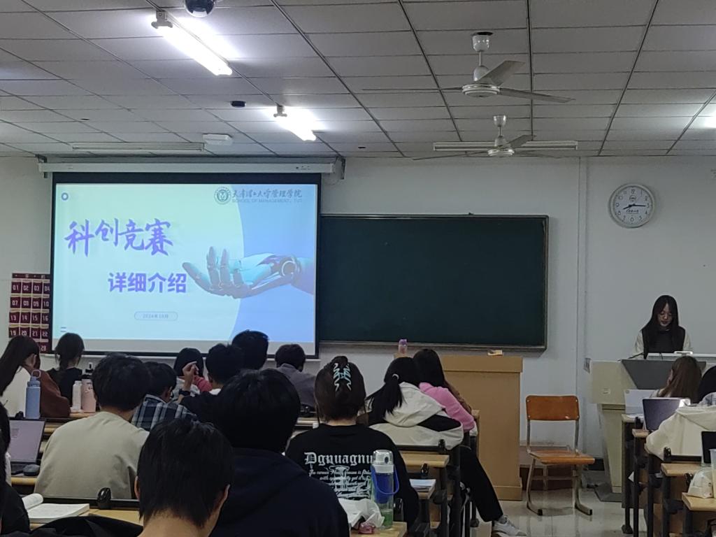 近日,管理学院面向2024级新生开展了科技创新比赛宣讲活动。