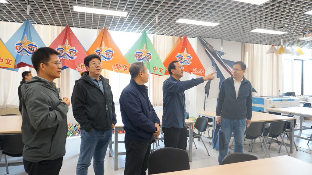 在参观过程中,天津师范大学科学教育中心的工作人员详细介绍了中心的教学设施、课程设置及教学特色。代表团一行先后参观了无人机展示区、传统文化展示区、激光加工教育区、虚拟现实教学区等多间实训教室,亲身体验了先进的科普教育设备和教学方法。在飞行器实验室,代表团成员们观察了水火箭的制作展示,了解了航空器设计与国内比赛等方面的内容;在传统文化展示区,他们则亲自参与了造纸体验、扎染体验和激光切割等实践活动,深入了解了传统文化与现代科学的碰撞与融合。