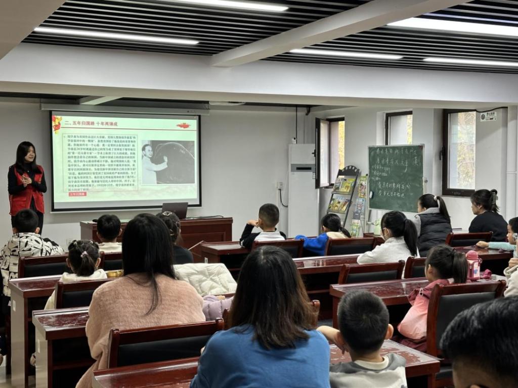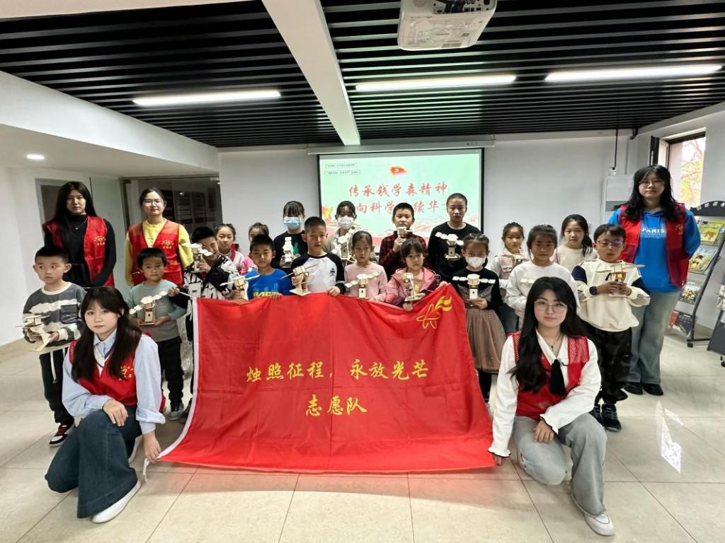 志愿队以“宣讲+手工制作”相结合的形式,向小朋友们介绍了中国导弹之父钱学森“五年归国路 十年两弹成”的报国之心,以互动问答、总结提问等方式宣传了钱学森精神。现场的小朋友们聚精会神,积极应答。志愿队带领小朋友们开展了人造卫星的手工制作活动,让大家在行动中更好地感悟科学之美、实践之乐。